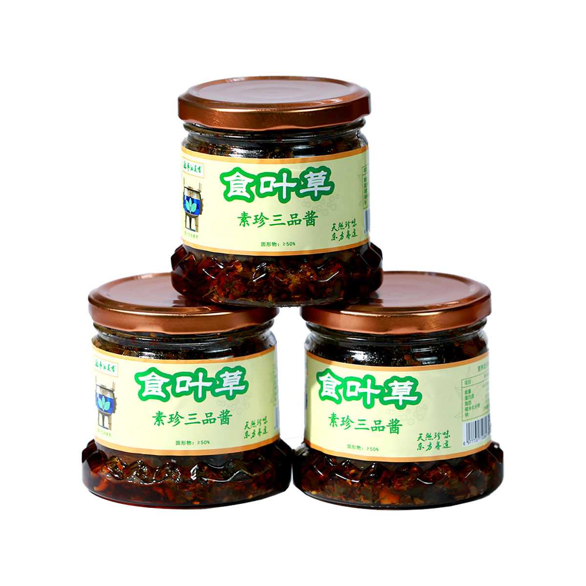 产品深度融合东方美学与素食哲学,以“三品”理念为核心,精选食叶草、豆豉、竹笋三味自然珍材,承袭廖派非遗制作技艺,经纯素锁鲜工艺精制而成。其酱体醇厚,口感层次丰富,既保留了食叶草的清新本味与营养,又融汇了豆豉的醇香与笋干的脆嫩,呈现出纯净、自然、协调的原味特色,赢得了大赛评委在“风味与品质”方面的高度评价。