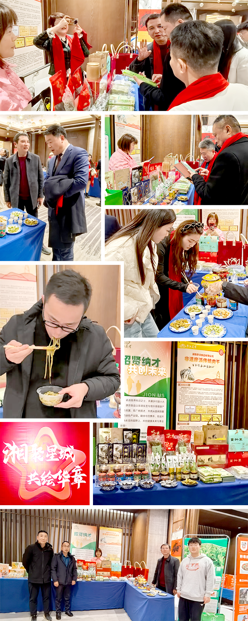 本次活动以 “商聚星城融湘势・共筑竹乡赢未来” 为主题,现场同步设置的 “桃品出桃” 展销专区,成为展现桃江特色的重要窗口。来自桃江各乡镇的特色农产品、竹制品、文旅产品集中亮相,其中,湖南廖派食品有限公司旗下的 “廖派莲香” 品牌展台前,更是人头攒动,吸引众多与会嘉宾驻足咨询、品鉴交流。